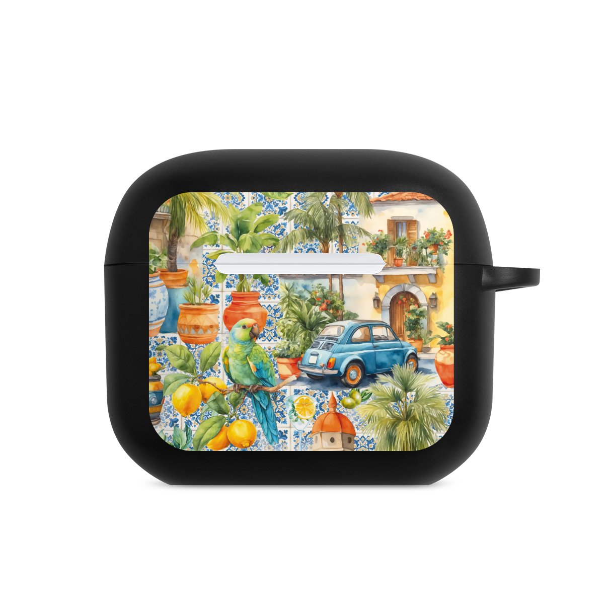 AirPods-kotelo on kätevä ja turvallinen säilytyskotelo AirPodille tai AirPods Prolle. Kiinnitetyn napsautuskoukun ansiosta voit kiinnittää AirPods-kotelon helposti vaikka avaimenperään tai laukkuun. The wireless charging functionality can be still used at any time. Kotelo on valmistettu TPU: sta, erittäin kestävästä ja särkymättömästä kovamuovimateriaalista. Kotelo on saatavana mustana tai valkoisena. Ja mikä parasta: Voit painattaa kannen juuri sellaiseksi kuin itse haluat - omilla kuvilla tai meidän kuvagakerian kuvilla, sekä lisätä tekstiä!