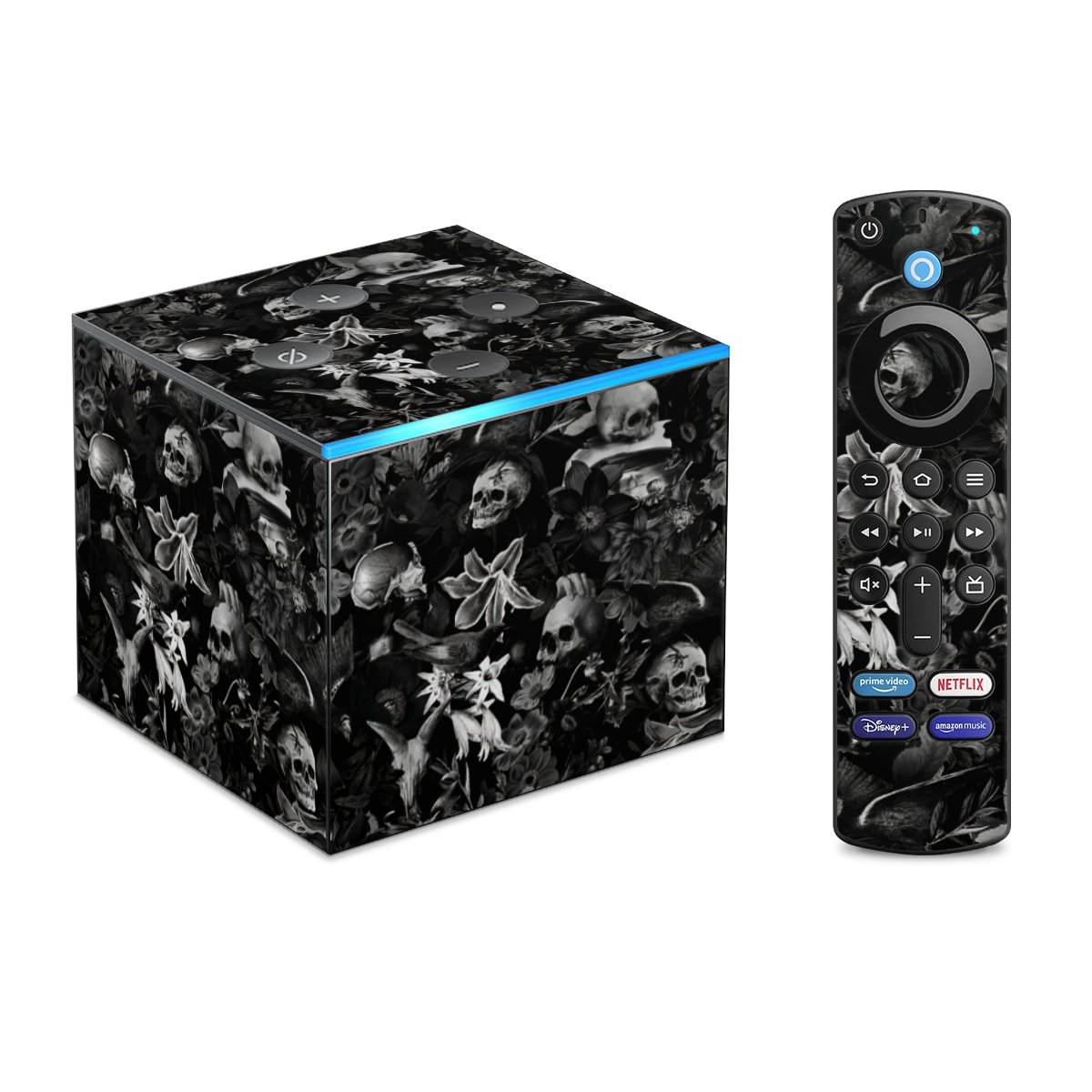 Skulls and Flowers on Black Background
