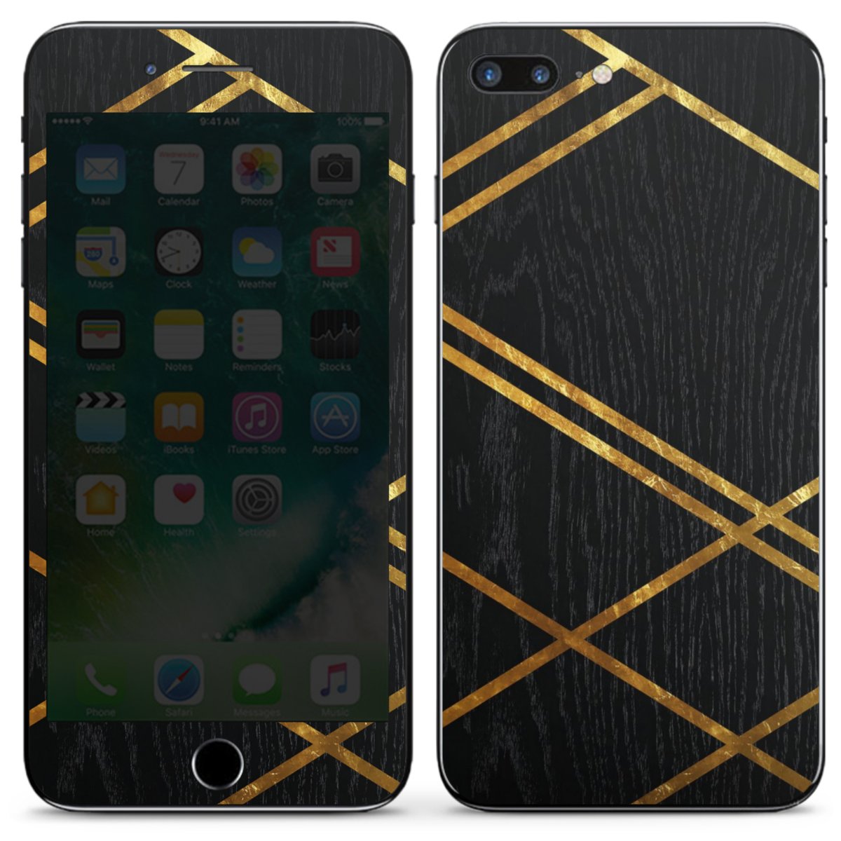 Black Geometric Pattern Golden Stripes