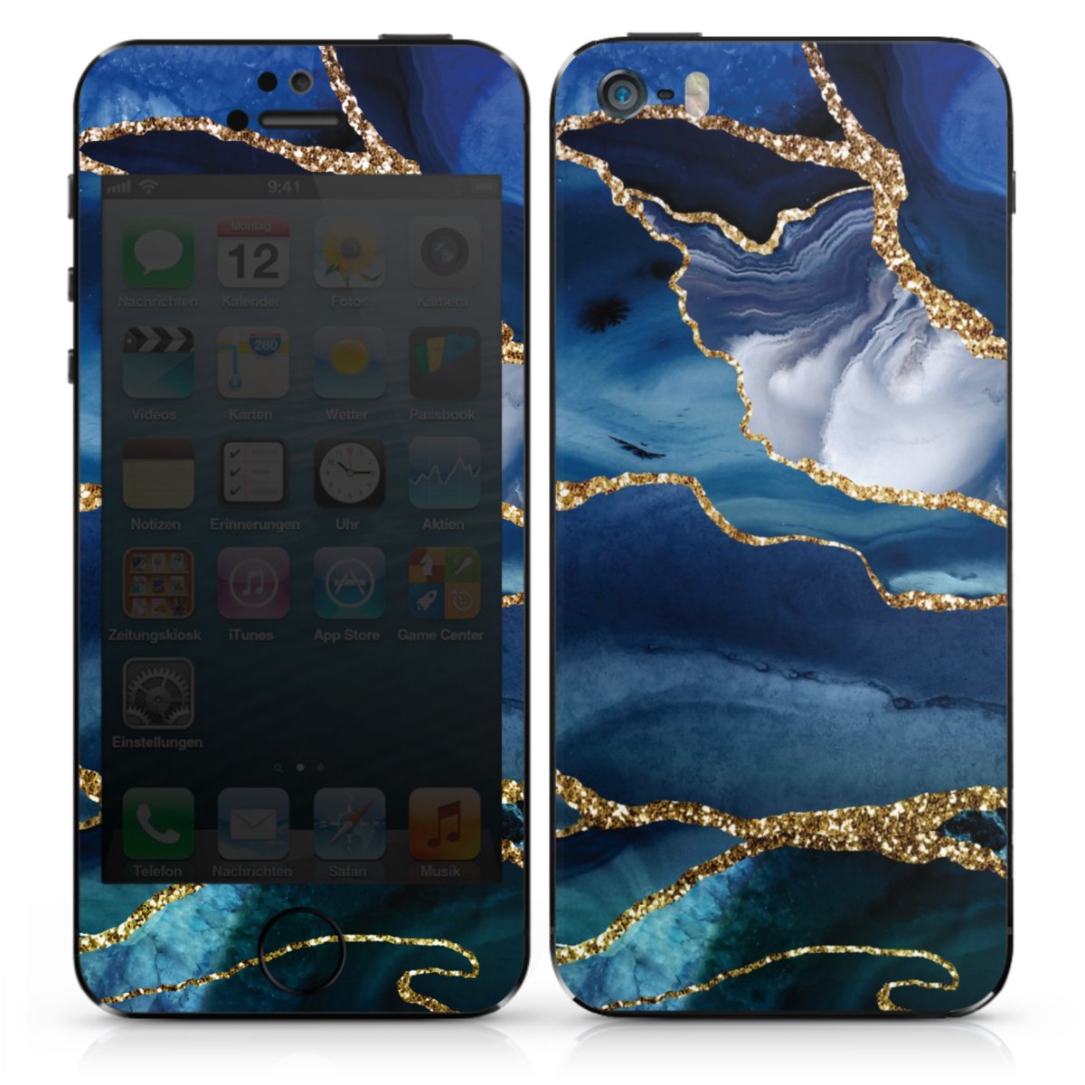 Blue Marble Gold Glitter Look