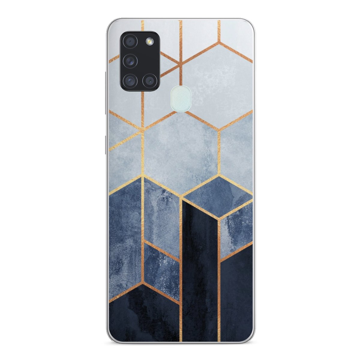 Soft Blue Hexagons Gold Print