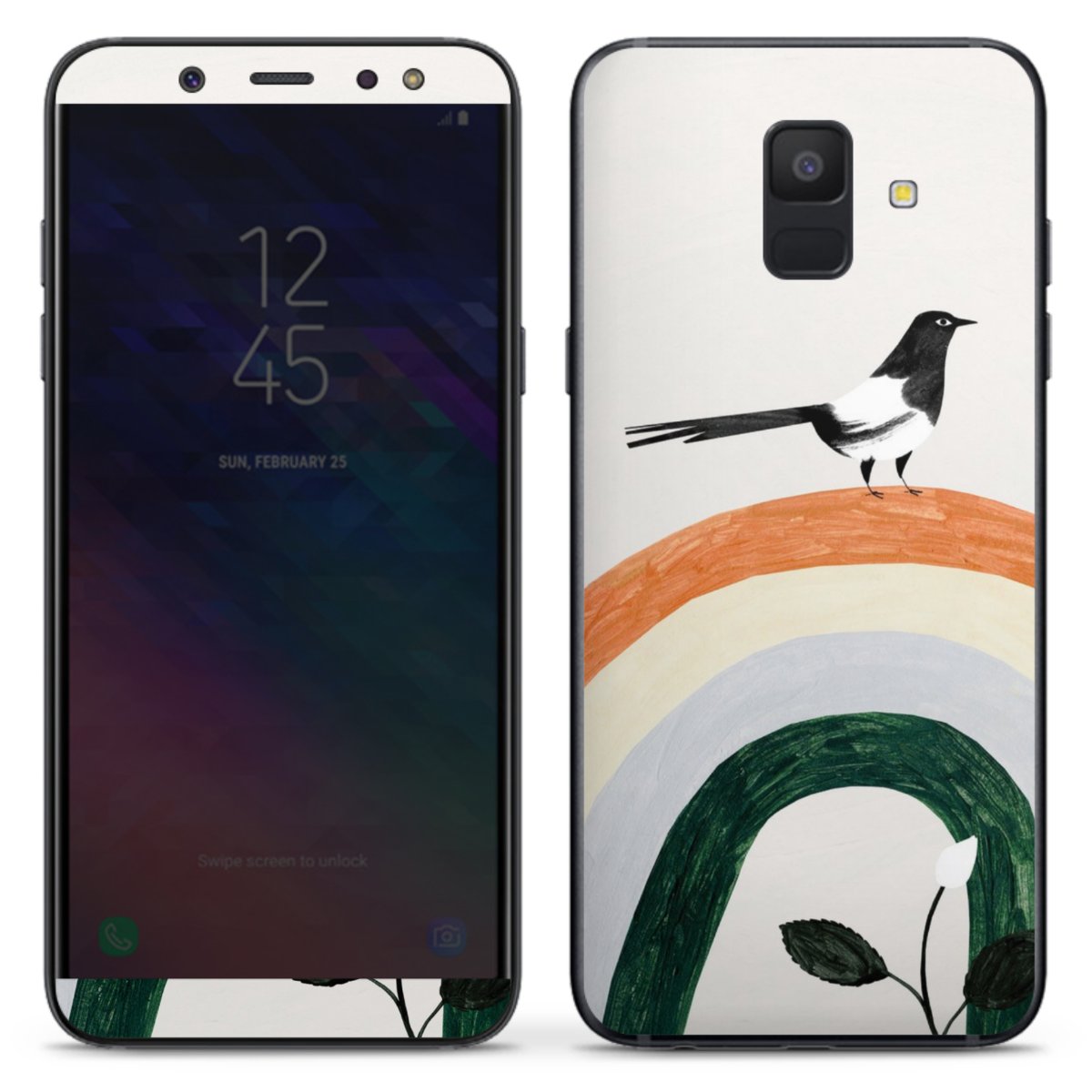 Pitkäikäinen premium vinyyli on vahvistettu mattalaminaatilla, joka suojaa puhelintasi naarmuilta. Premium vinyyli on ultraohut eikä tee laitteestasi yhtään kookkaampaa, kiinnitätpä vinyylin sitten etu- tai takapuolelle. Vinyylin pohjaväri on valkoinen.
