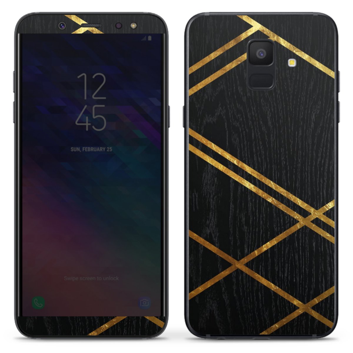 Black Geometric Pattern Golden Stripes
