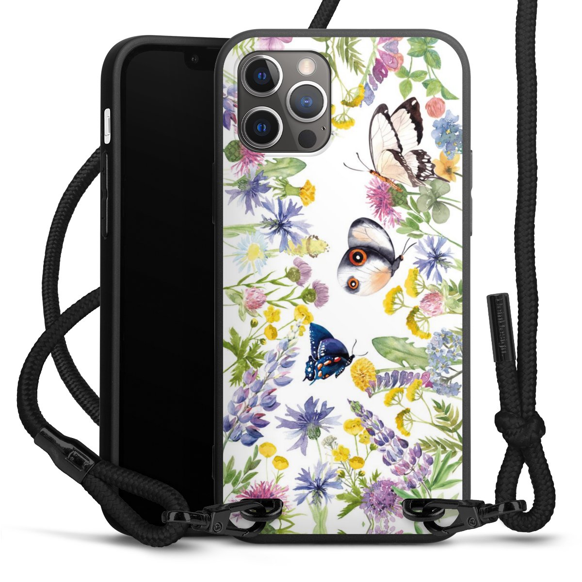 Bunte Frühlingsblumen und Schmetterlinge