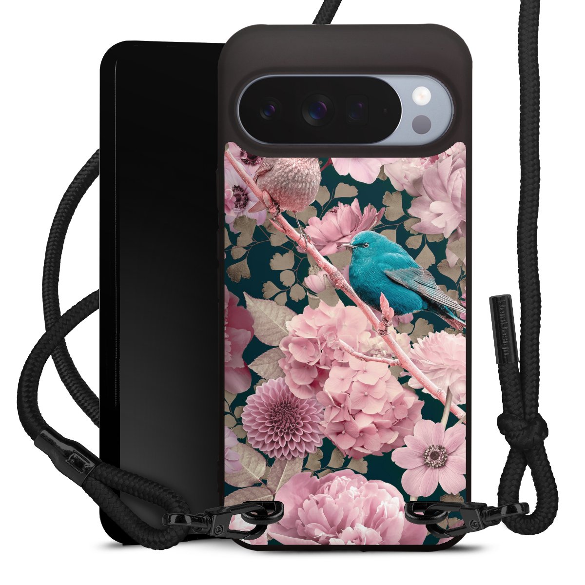 Sparrows in Pink Flower Pattern