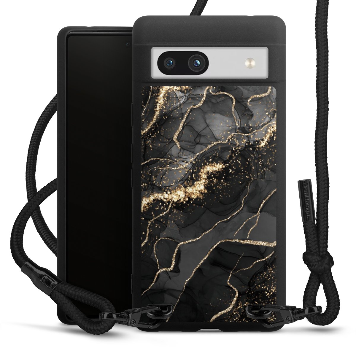 Dark Marble Swirls Gold Look
