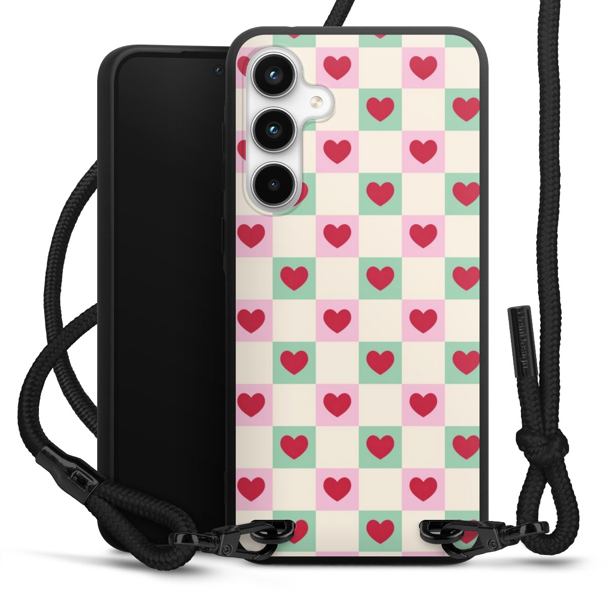 Valentine Checked Hearts Pattern Pink Green