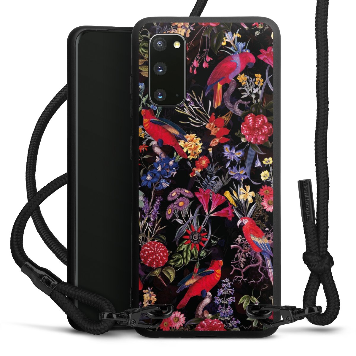Dark Flowers and Parrots