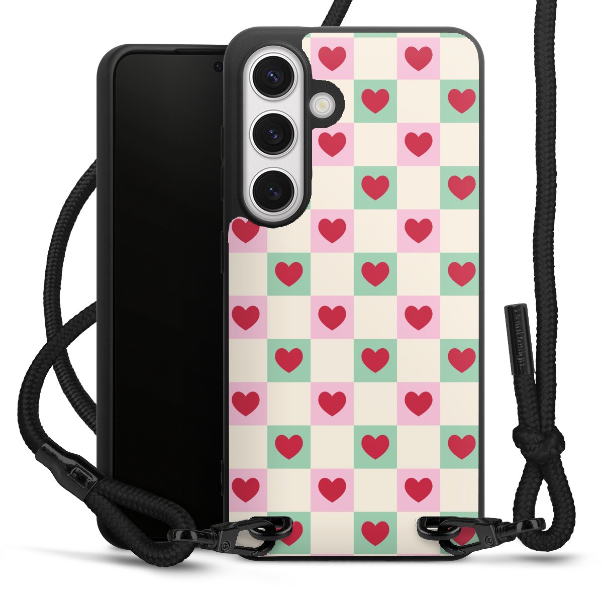 Valentine Checked Hearts Pattern Pink Green