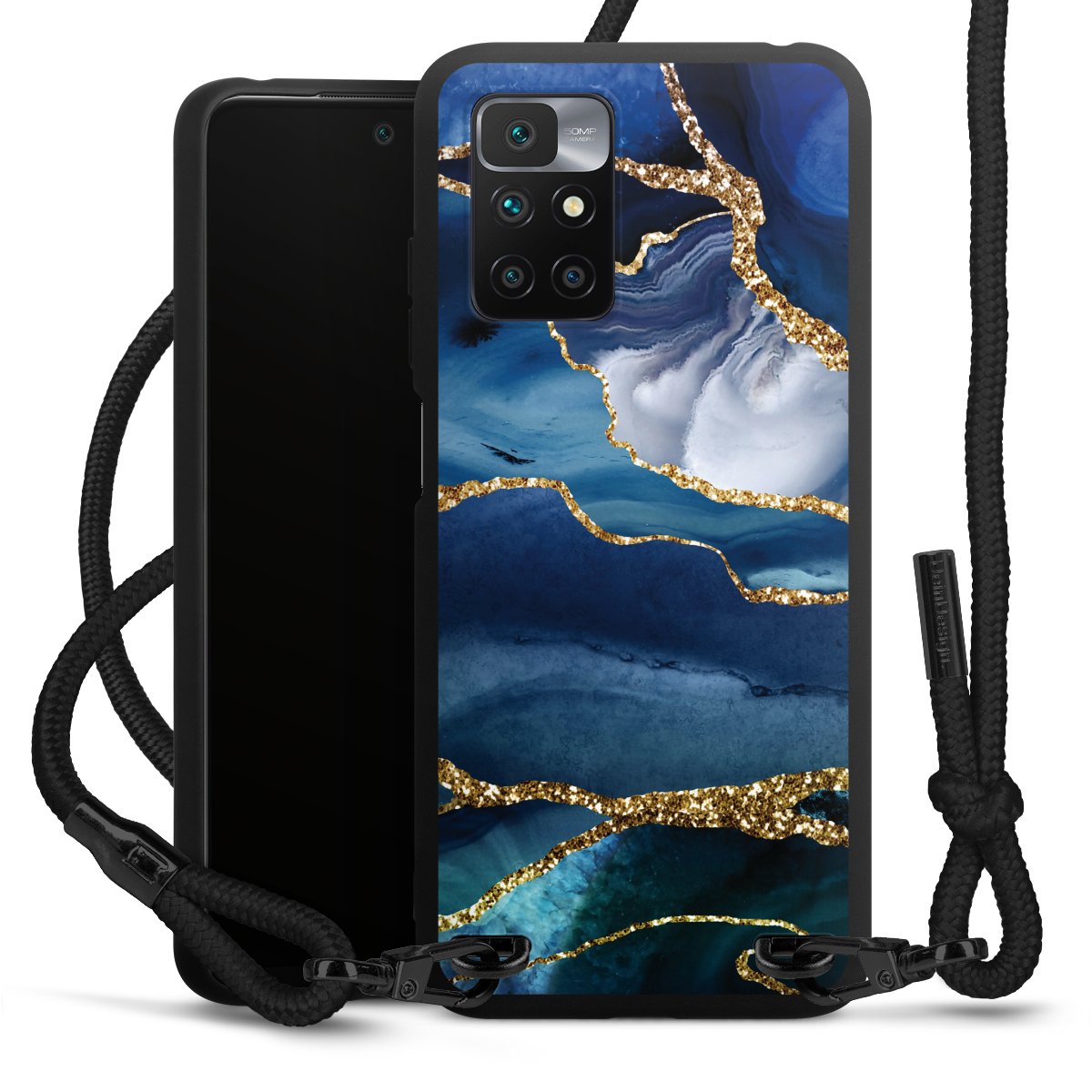 Blue Marble Gold Glitter Look
