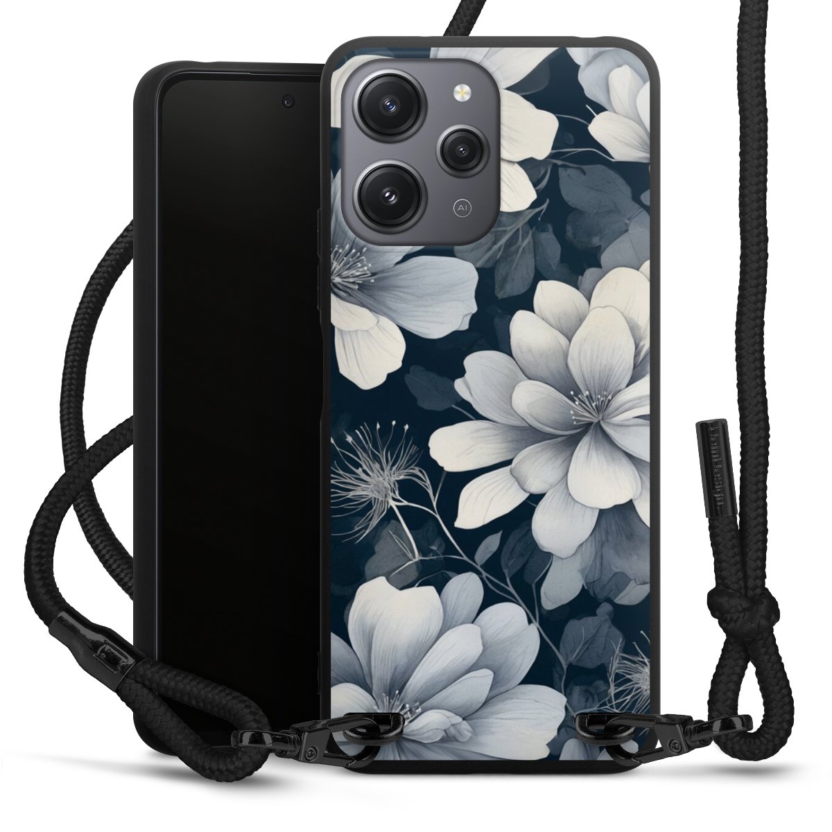 Negative Flower Blue White with AI
