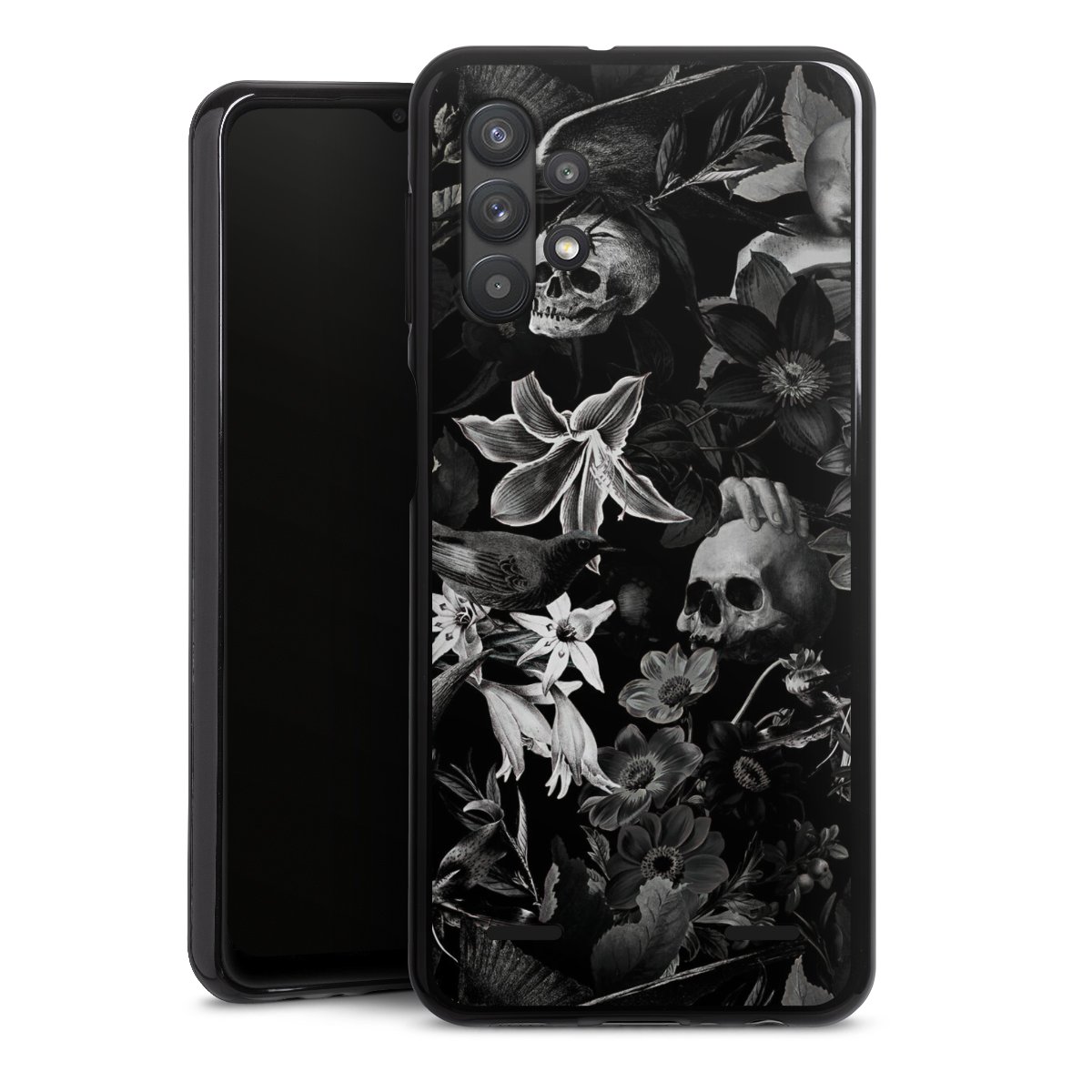 Skulls and Flowers on Black Background