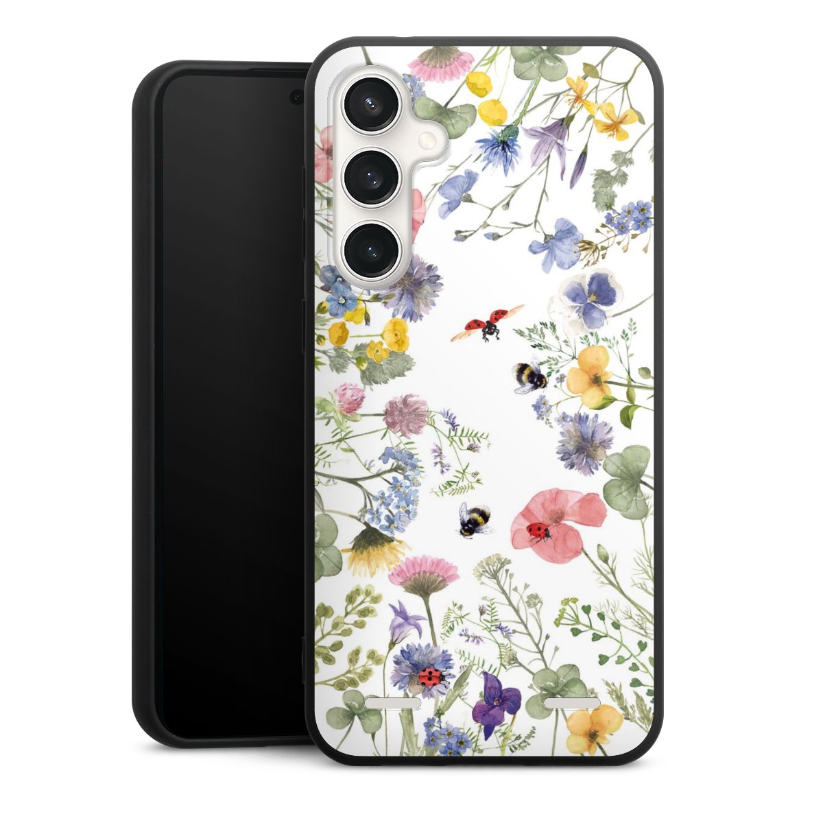 Bunte Frühlingsblumen und Bienen