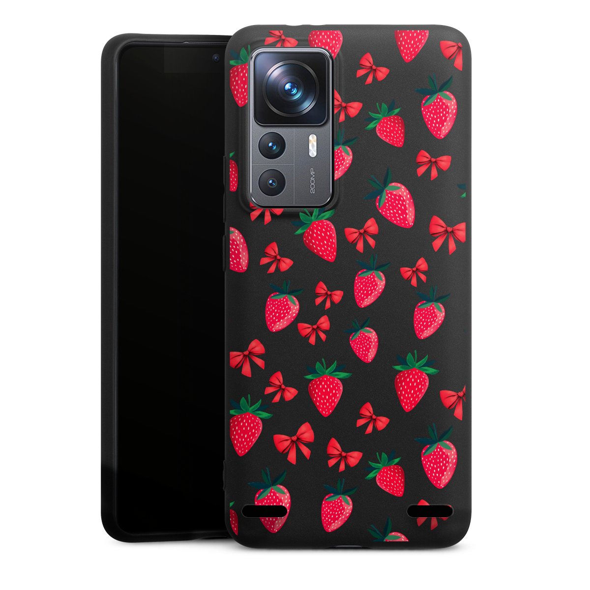 Strawberry Heart Ribbon Pattern Transparent