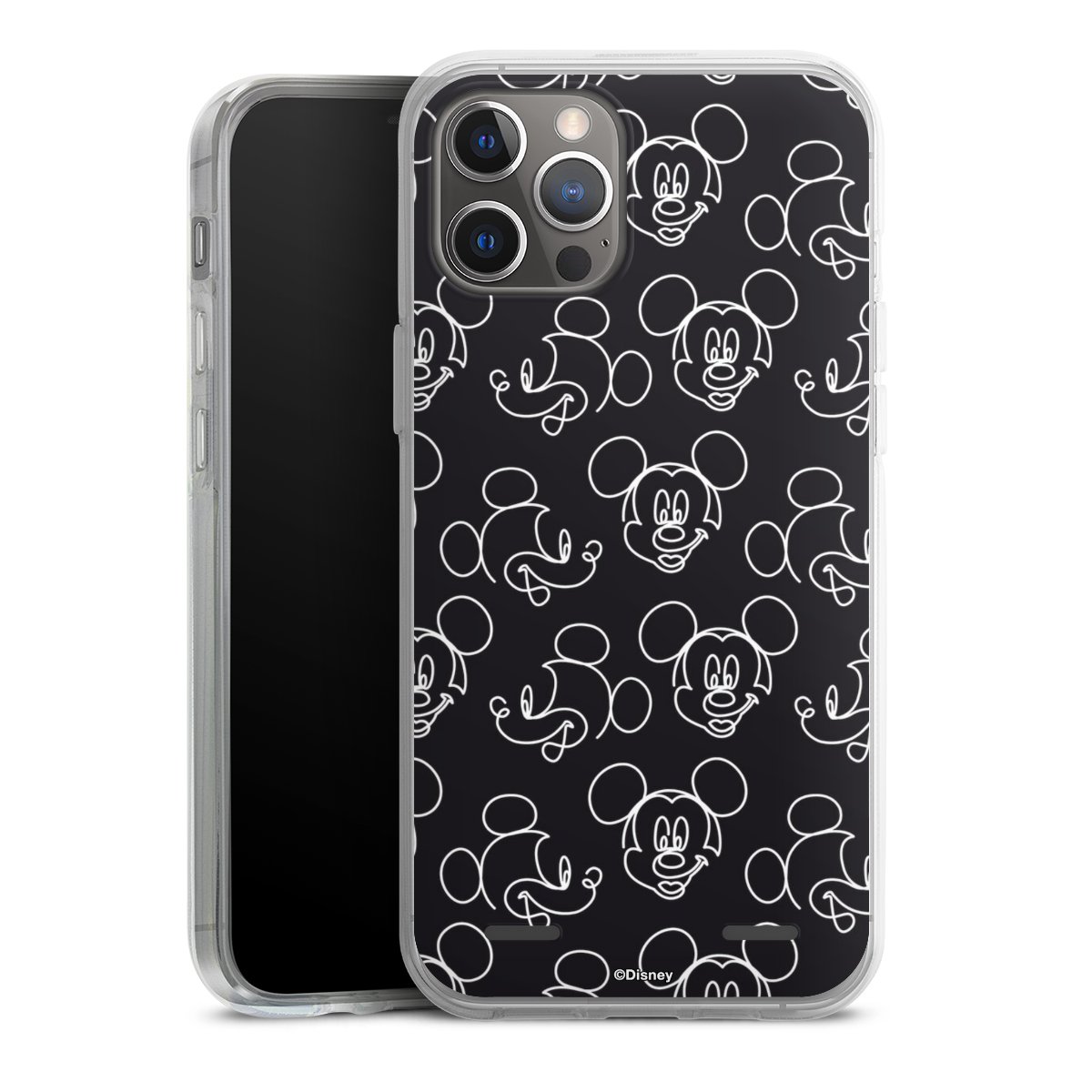 Disney Mickey Faces Black Line Art Pattern