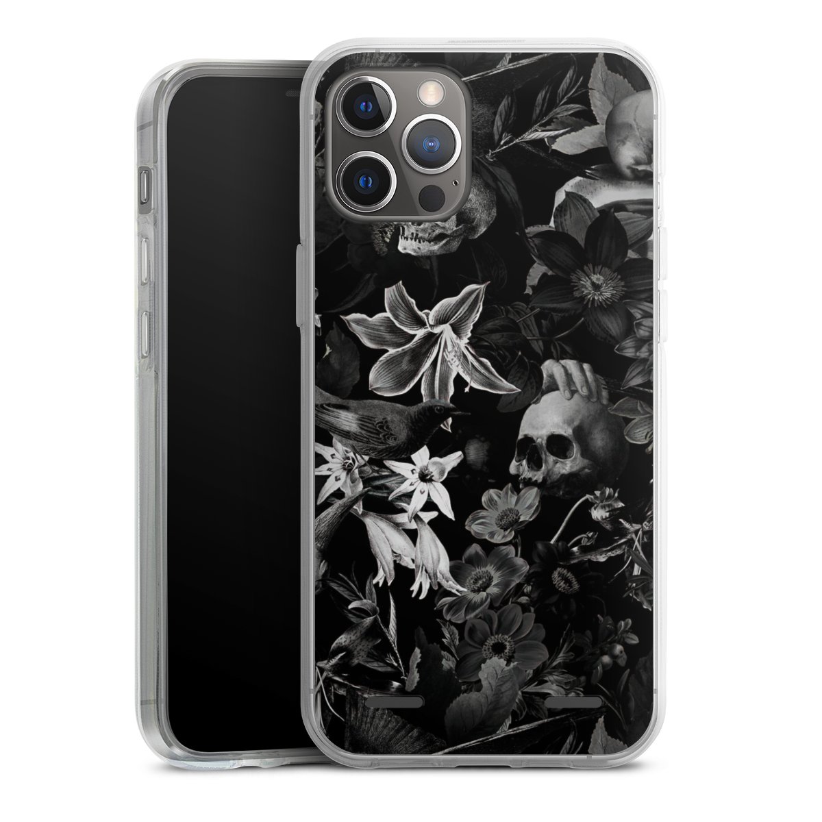 Skulls and Flowers on Black Background