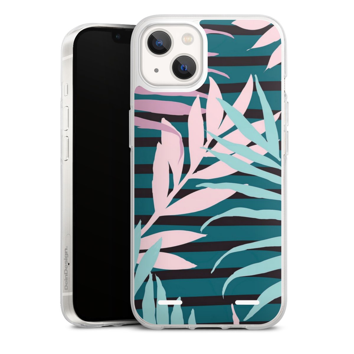 Pastel Jungle Leaves Pink Teal Seamless