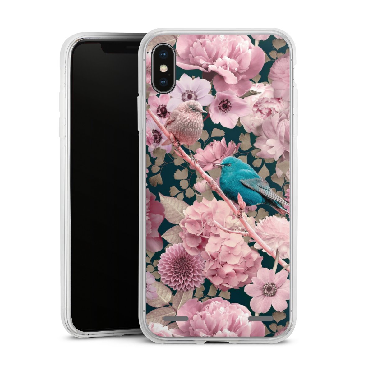 Sparrows in Pink Flower Pattern