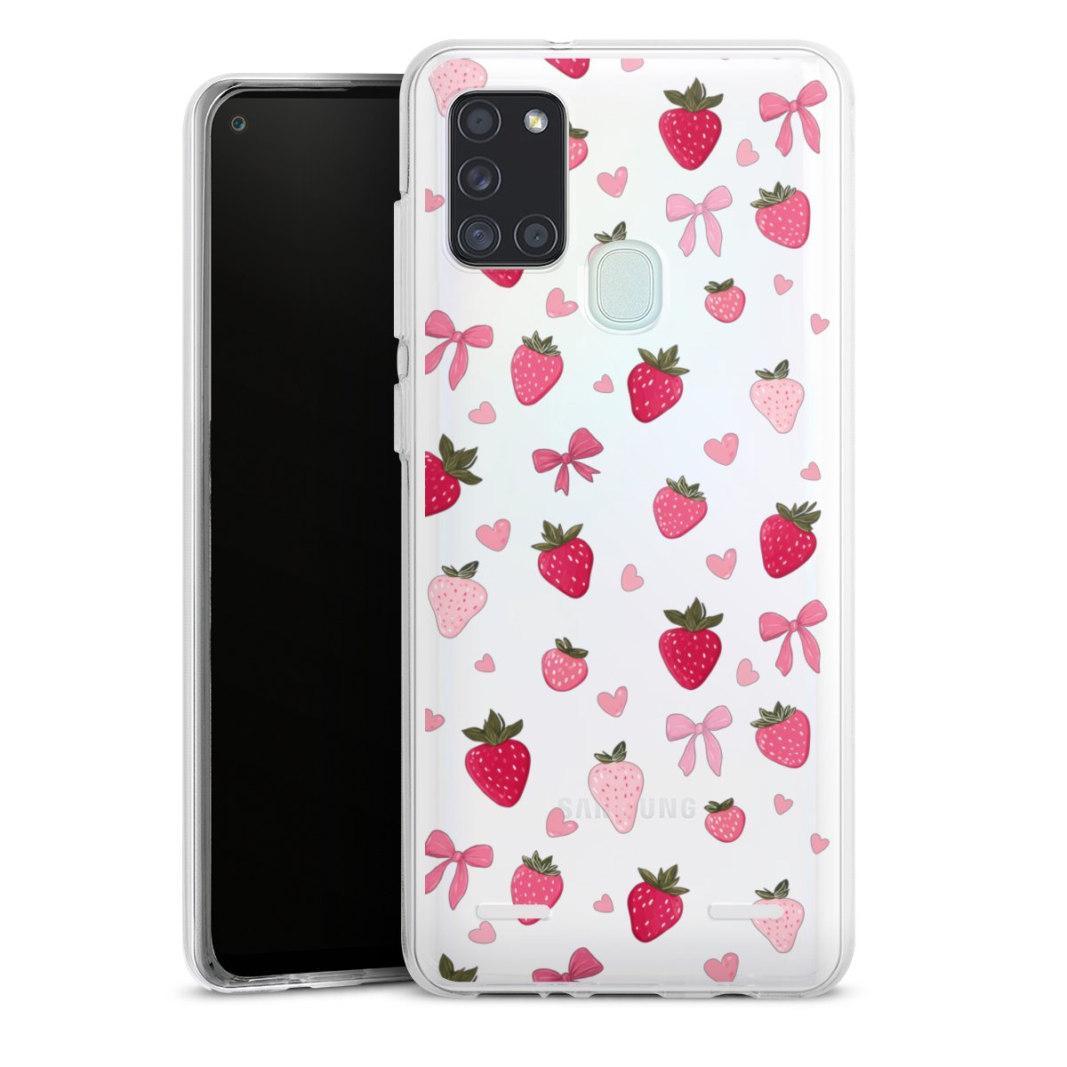 Strawberry Ribbon Pattern Pink Transparent