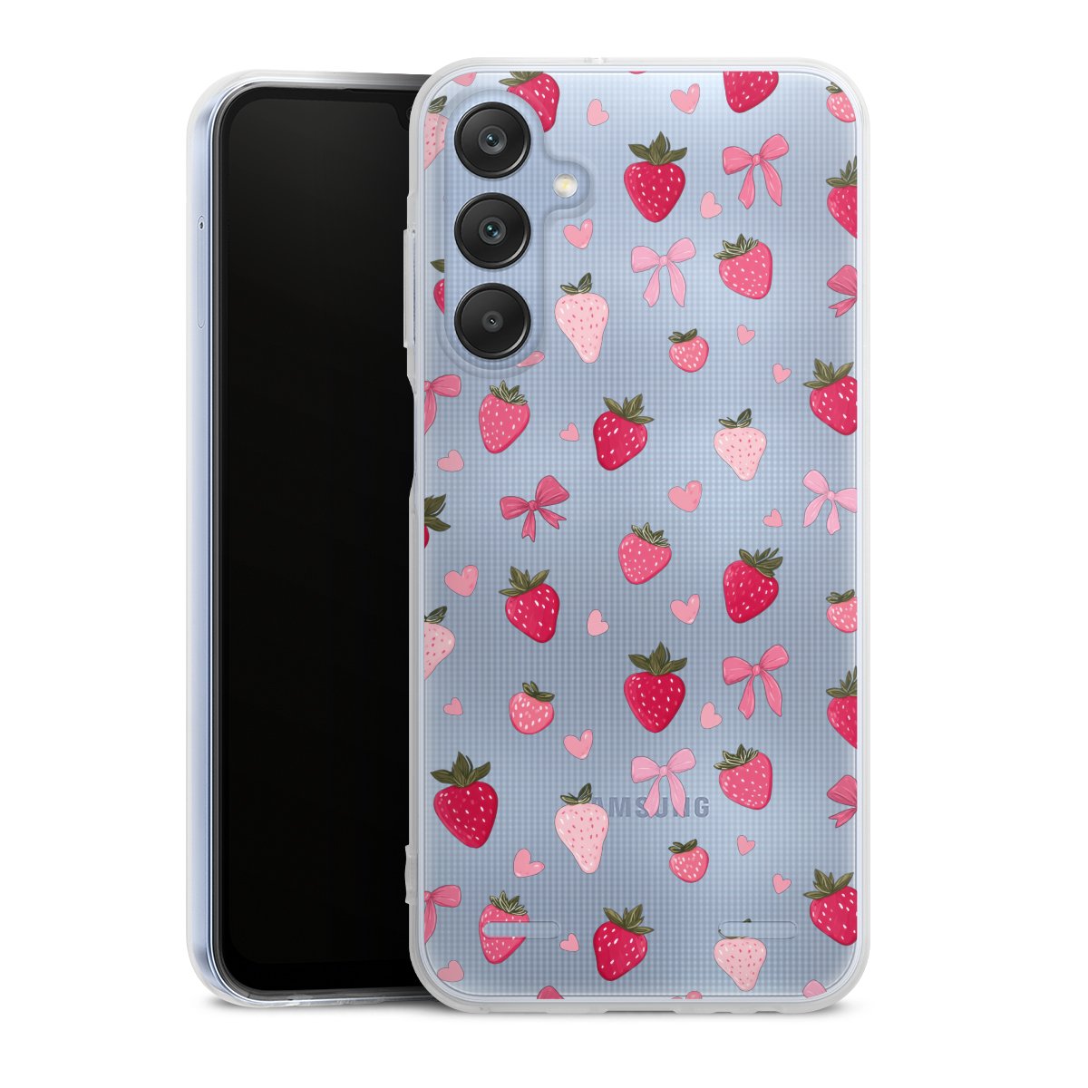 Strawberry Ribbon Pattern Pink Transparent