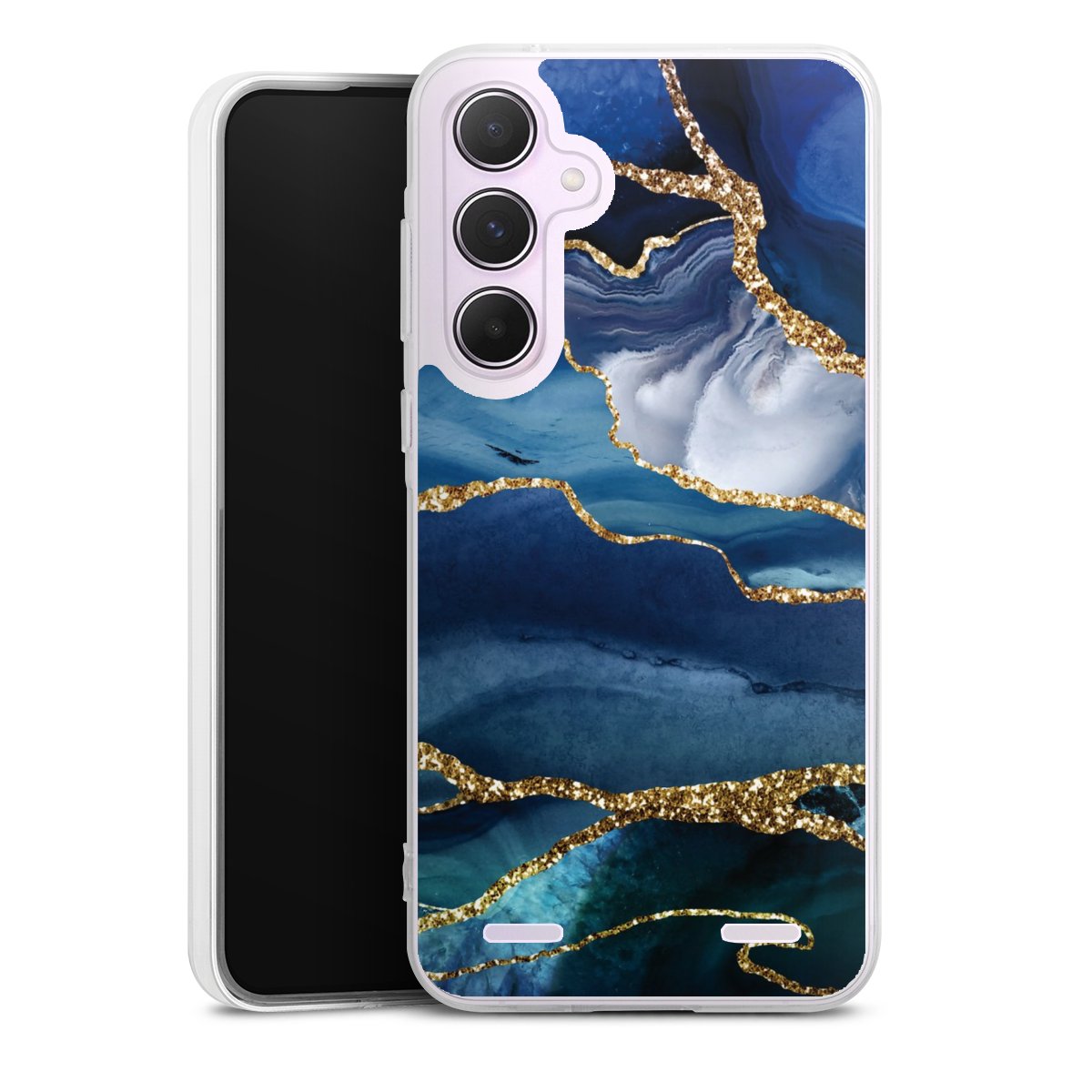 Blue Marble Gold Glitter Look