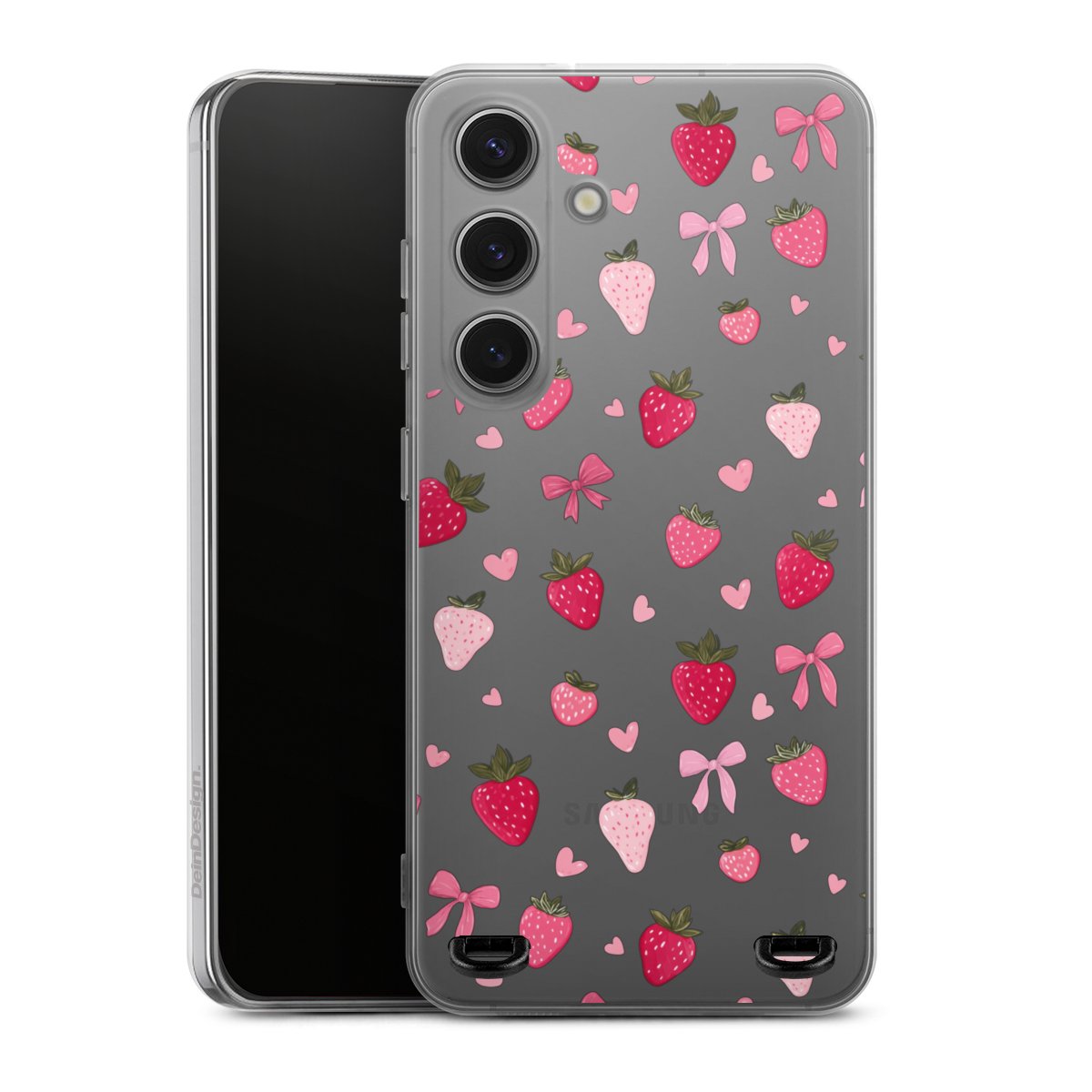 Strawberry Ribbon Pattern Pink Transparent