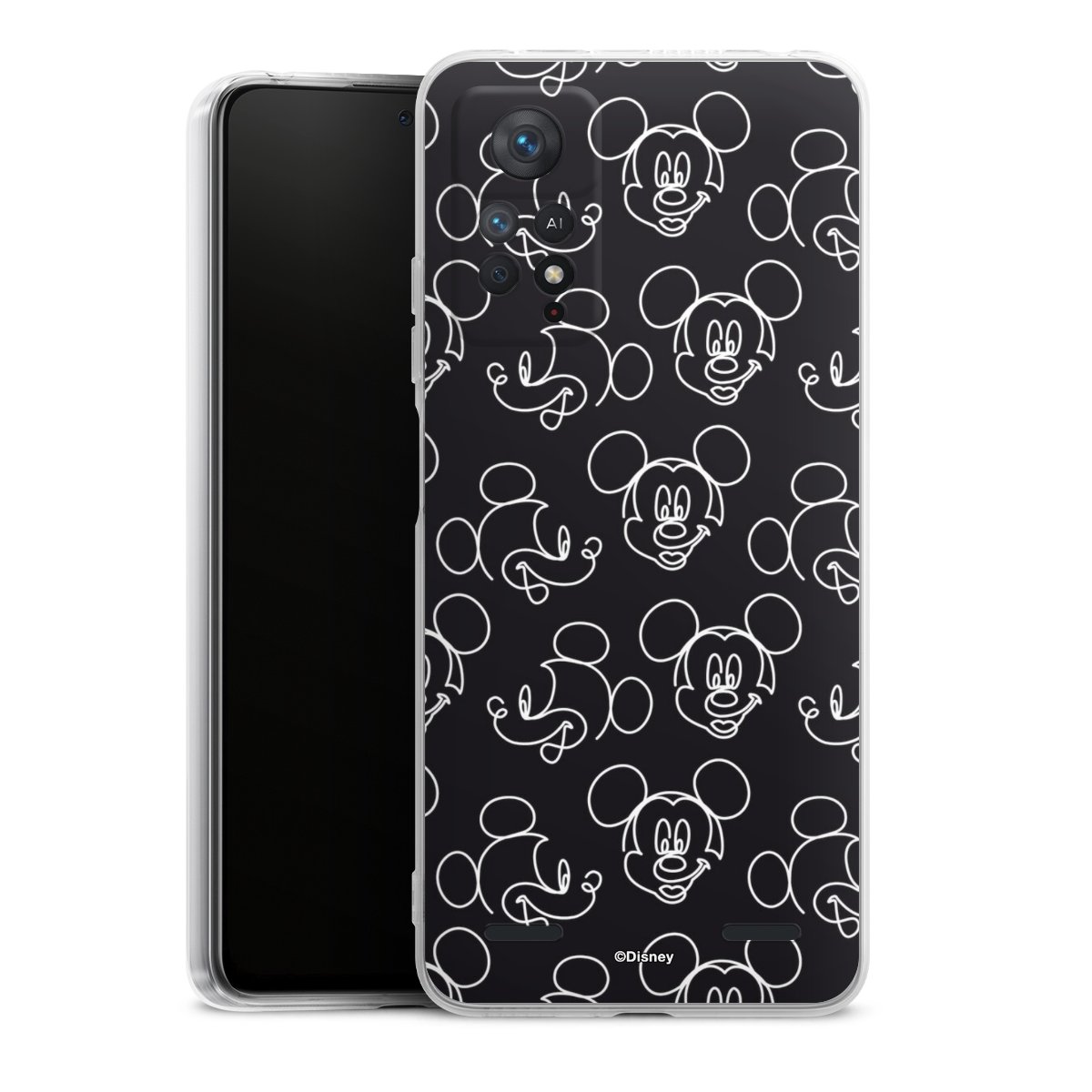 Disney Mickey Faces Black Line Art Pattern