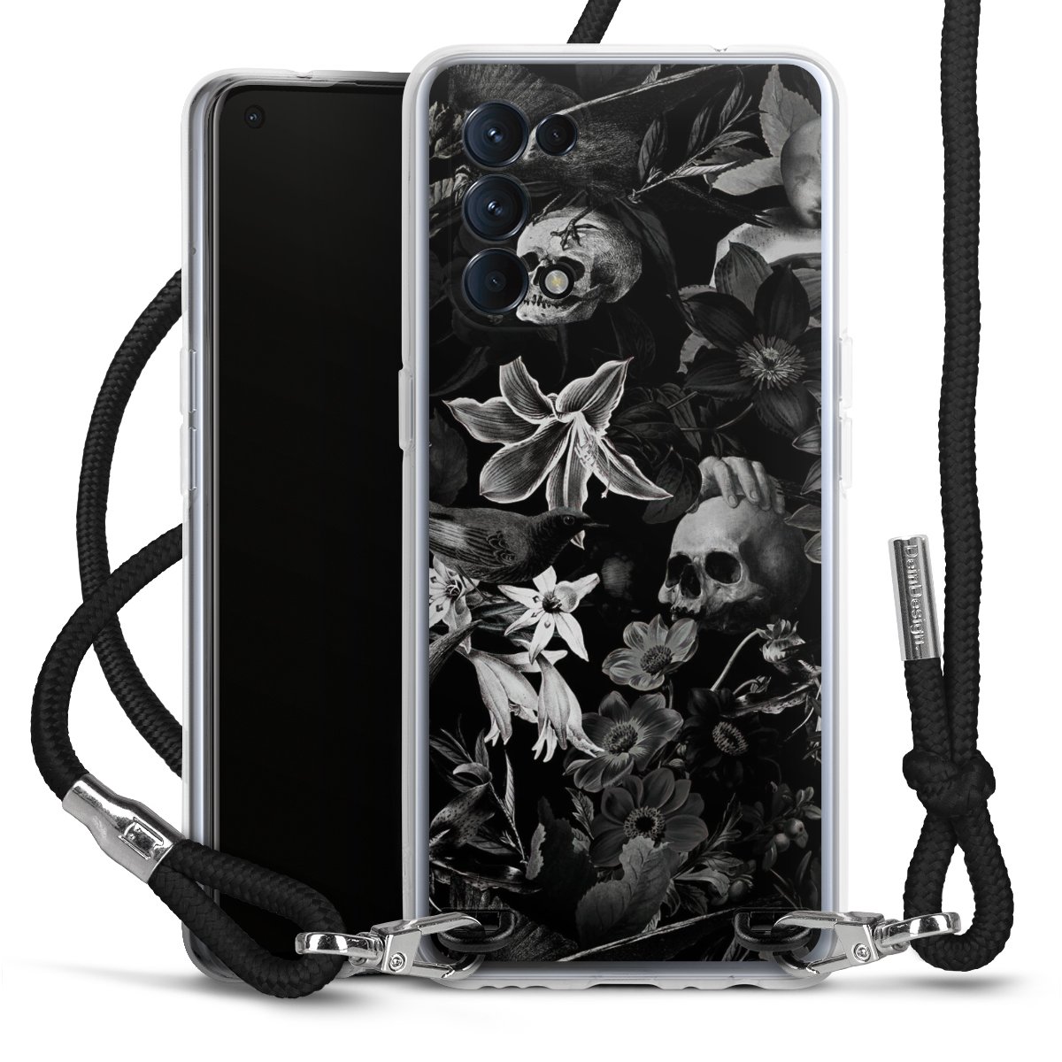 Skulls and Flowers on Black Background