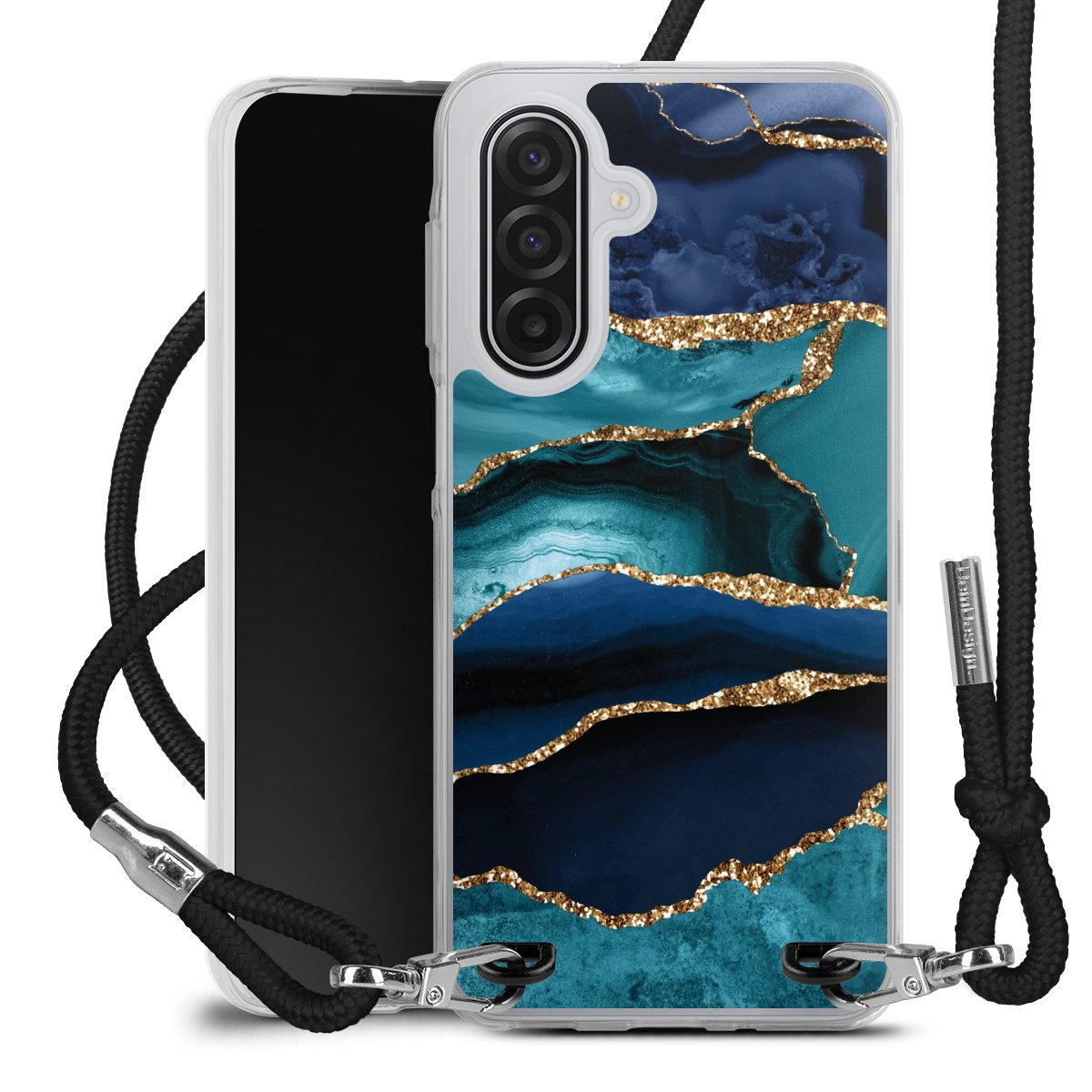 Dark and Light Blue Marble Gold Glitter Look