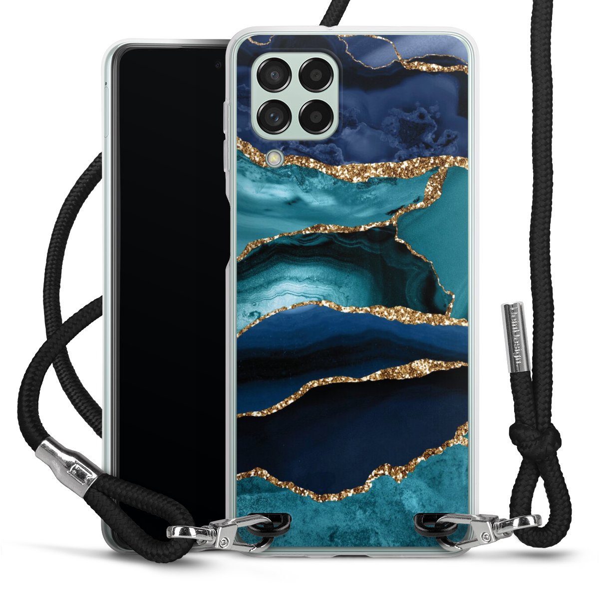 Dark and Light Blue Marble Gold Glitter Look