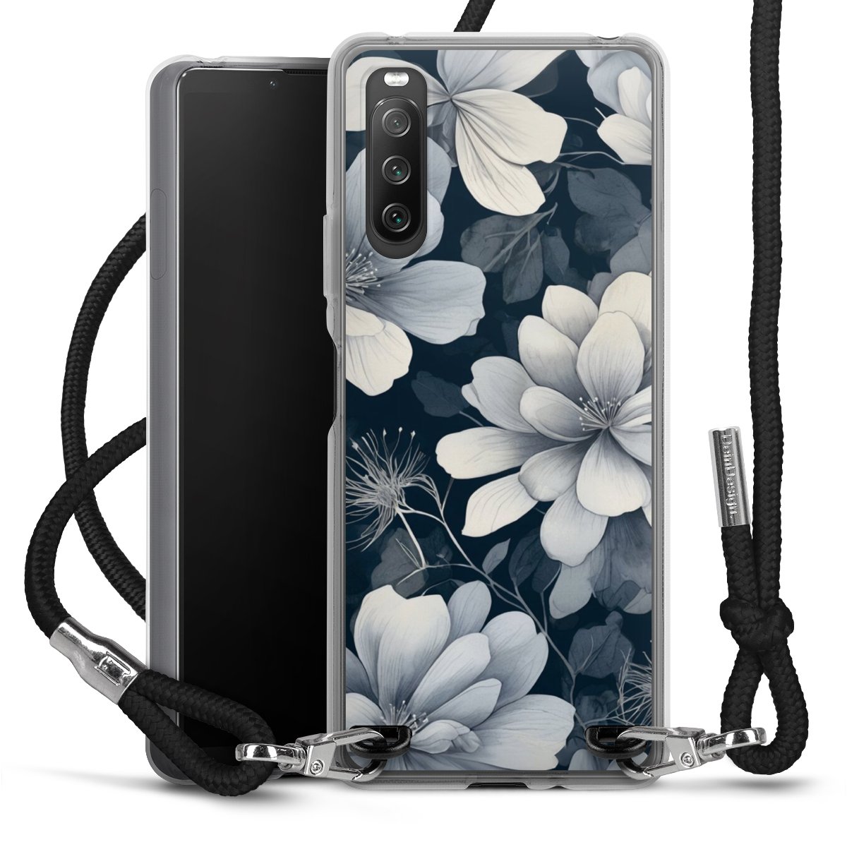 Negative Flower Blue White with AI