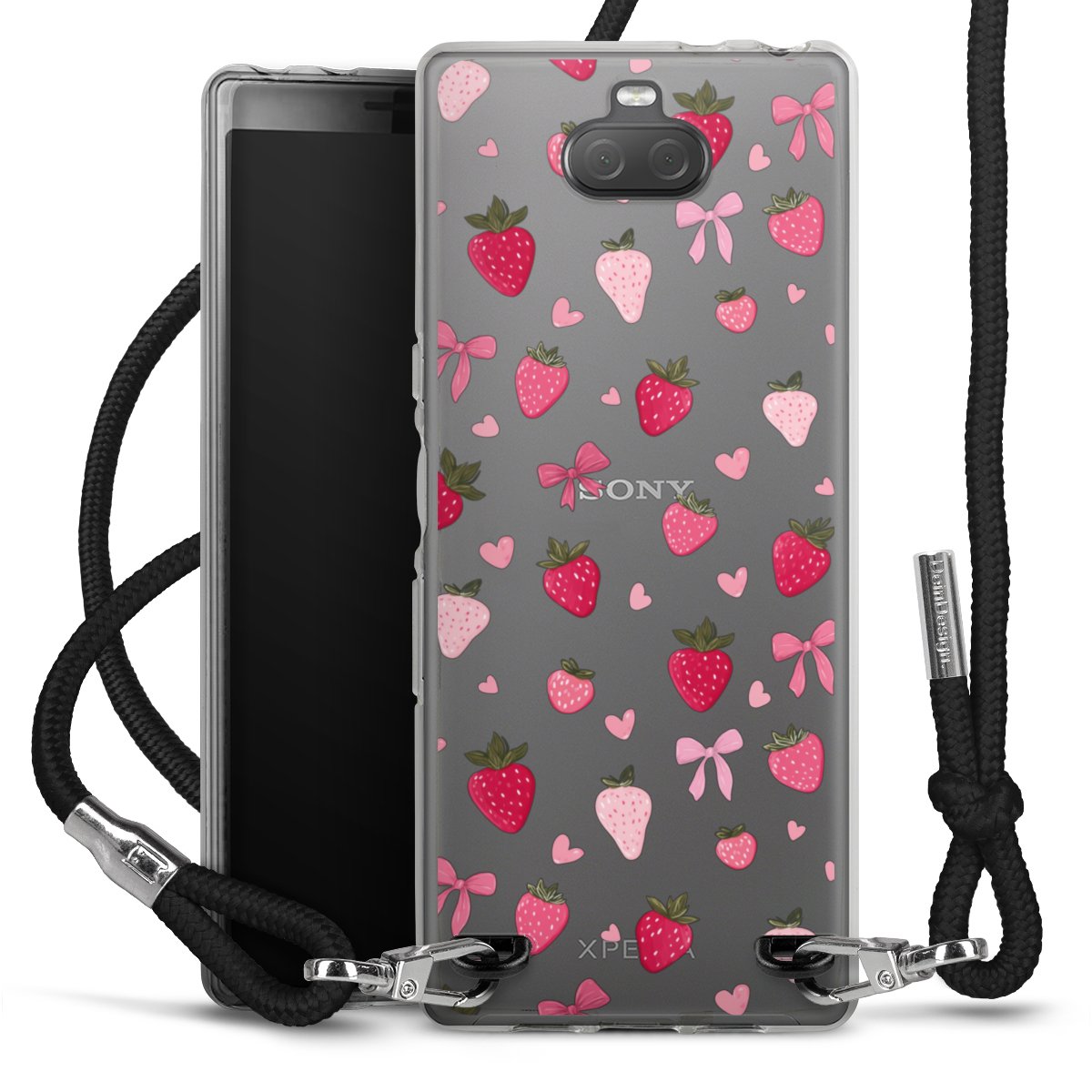 Strawberry Ribbon Pattern Pink Transparent