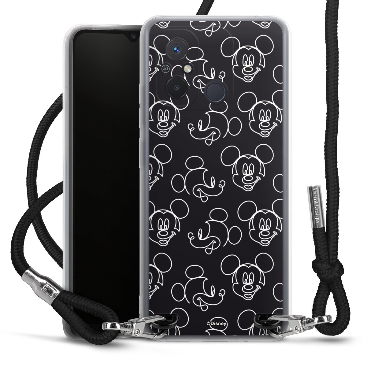 Disney Mickey Faces Black Line Art Pattern