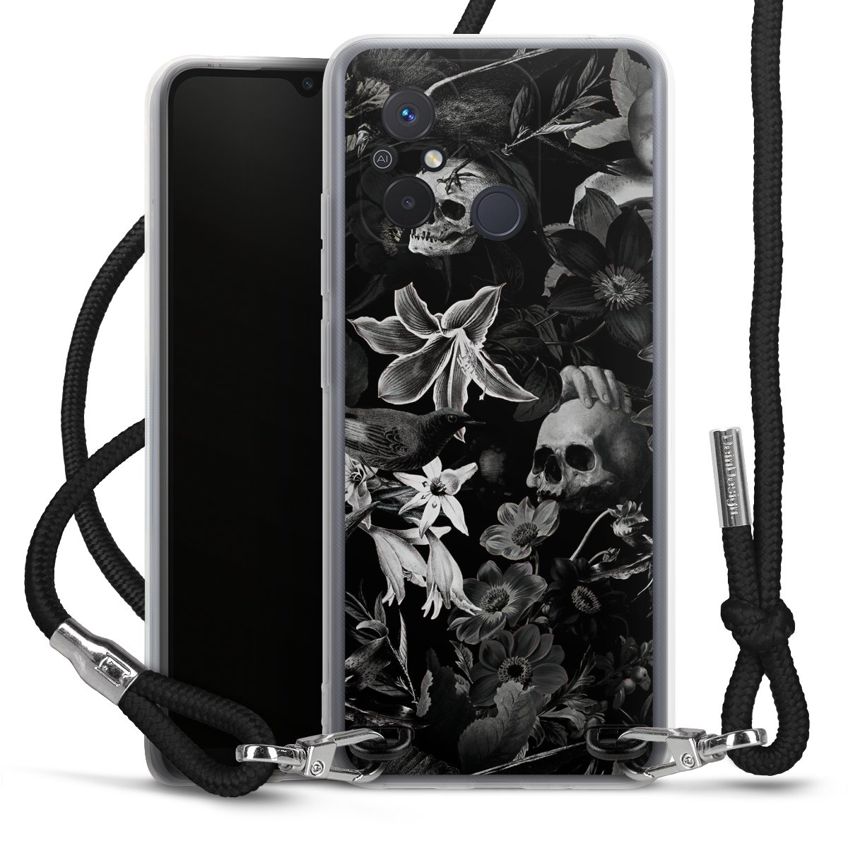 Skulls and Flowers on Black Background