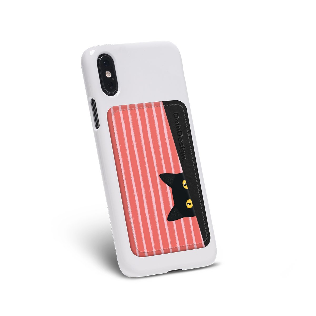 We advise to clean your phone case with a soft cloth and a mild detergent first. On the back of the card holder you will find an adhesive strip. Pull off the protective film and press the card holder firmly against the phone case – that’s it!