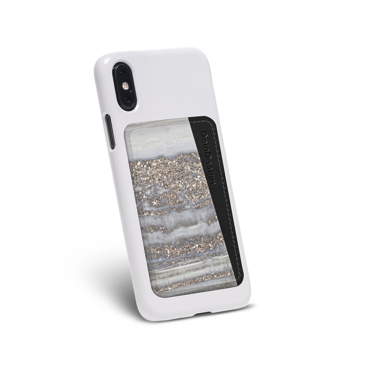 We advise to clean your phone case with a soft cloth and a mild detergent first. On the back of the card holder you will find an adhesive strip. Pull off the protective film and press the card holder firmly against the phone case – that’s it!