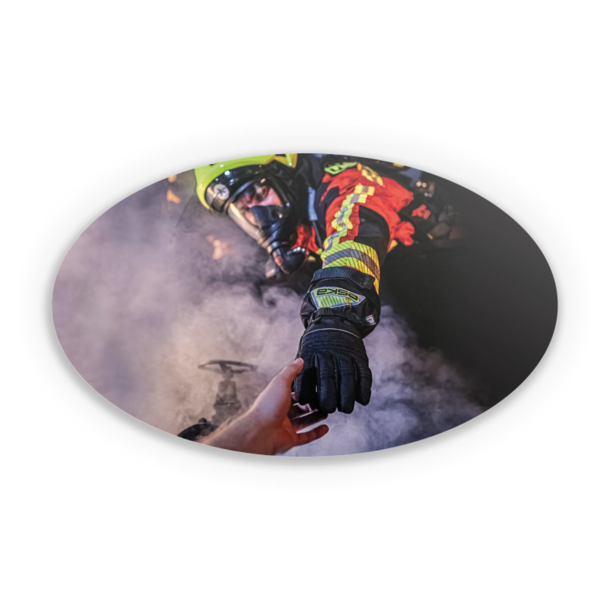 Firefighter Reaches for Hand