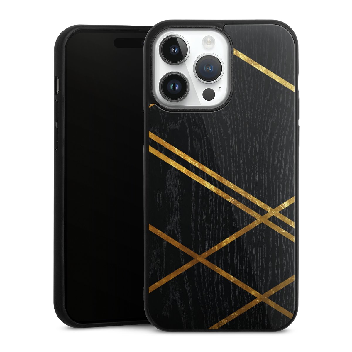Black Geometric Pattern Golden Stripes