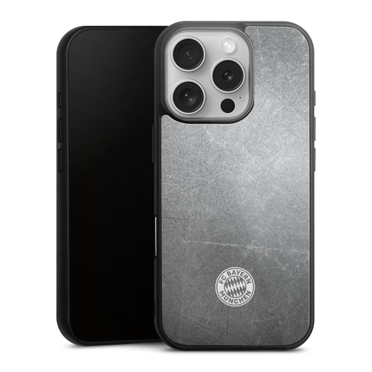 Klassisches FCB Logo Klein - Weiß auf Metalllook