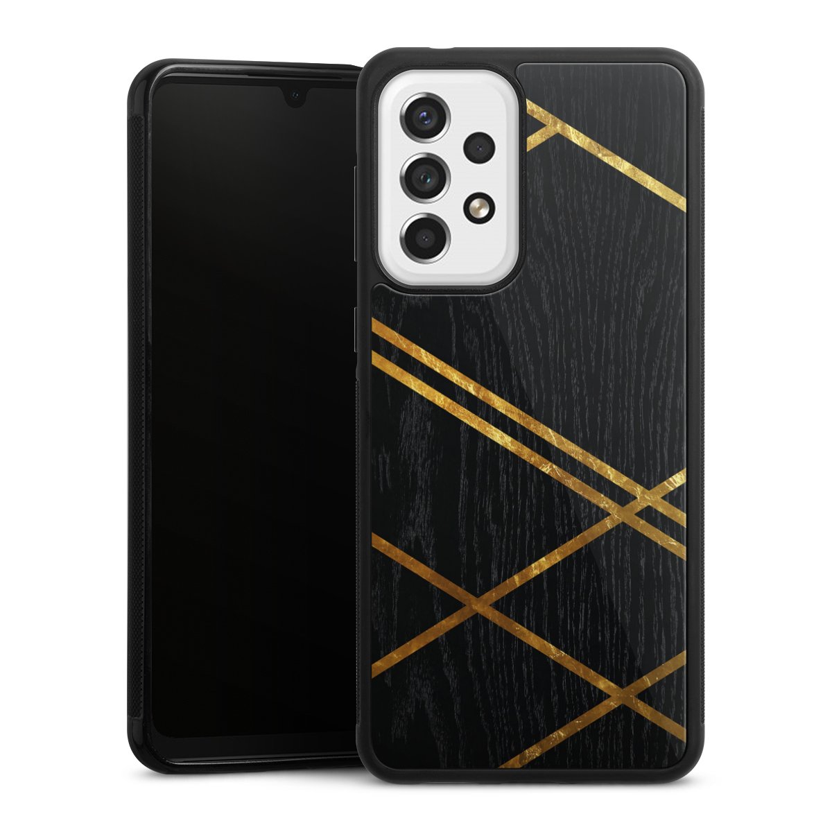 Black Geometric Pattern Golden Stripes