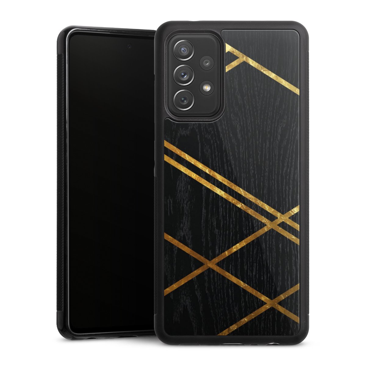 Black Geometric Pattern Golden Stripes