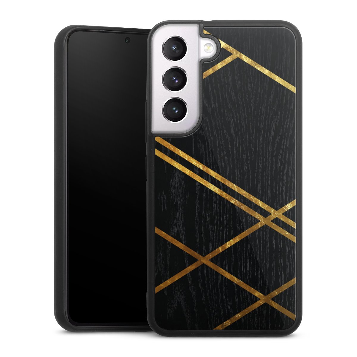 Black Geometric Pattern Golden Stripes