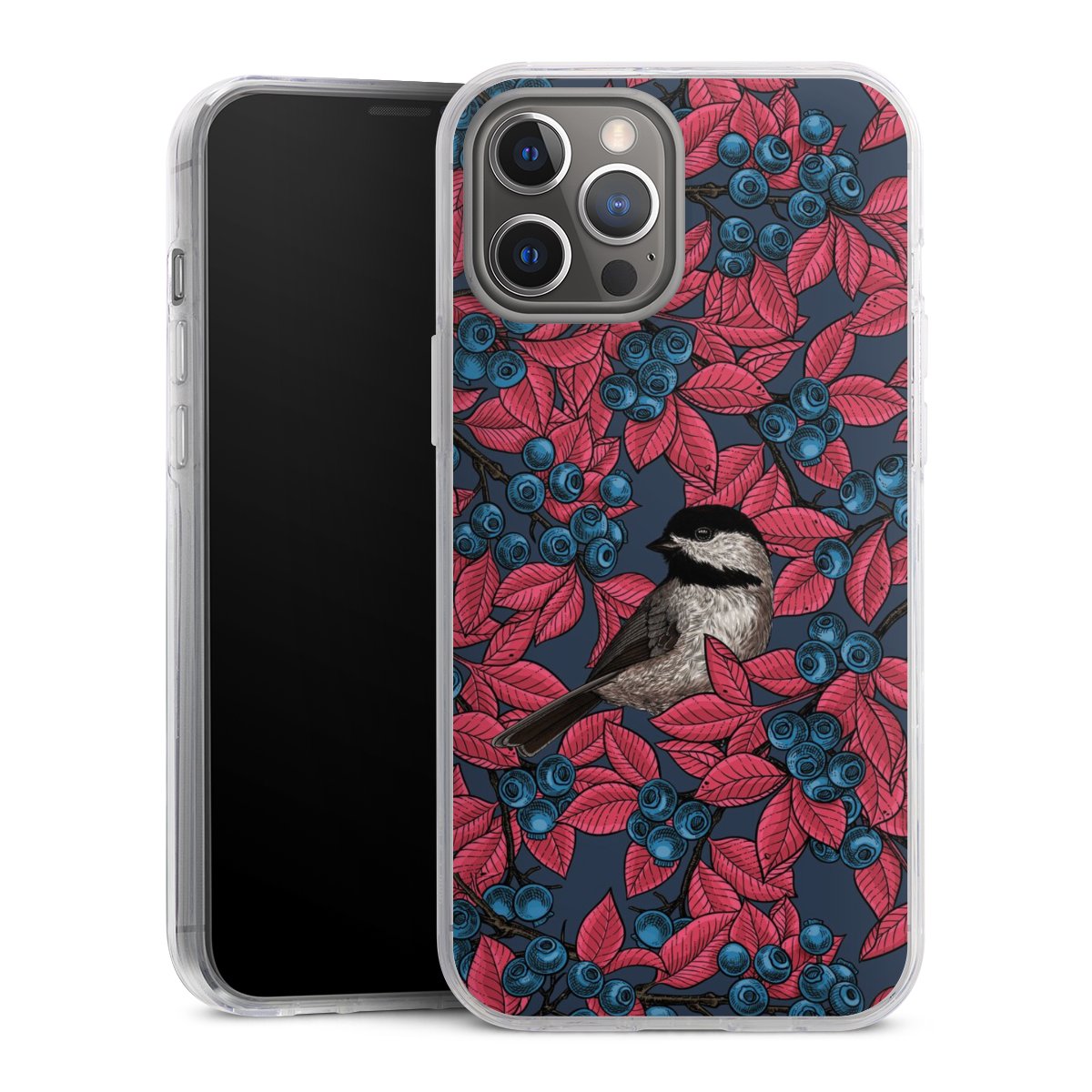 Blueberries And Birds On Navy