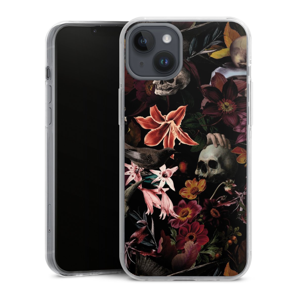 Skulls and Flowers on Dark Background
