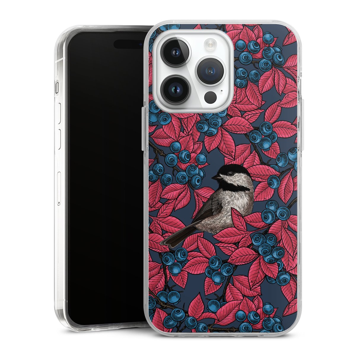 Blueberries And Birds On Navy