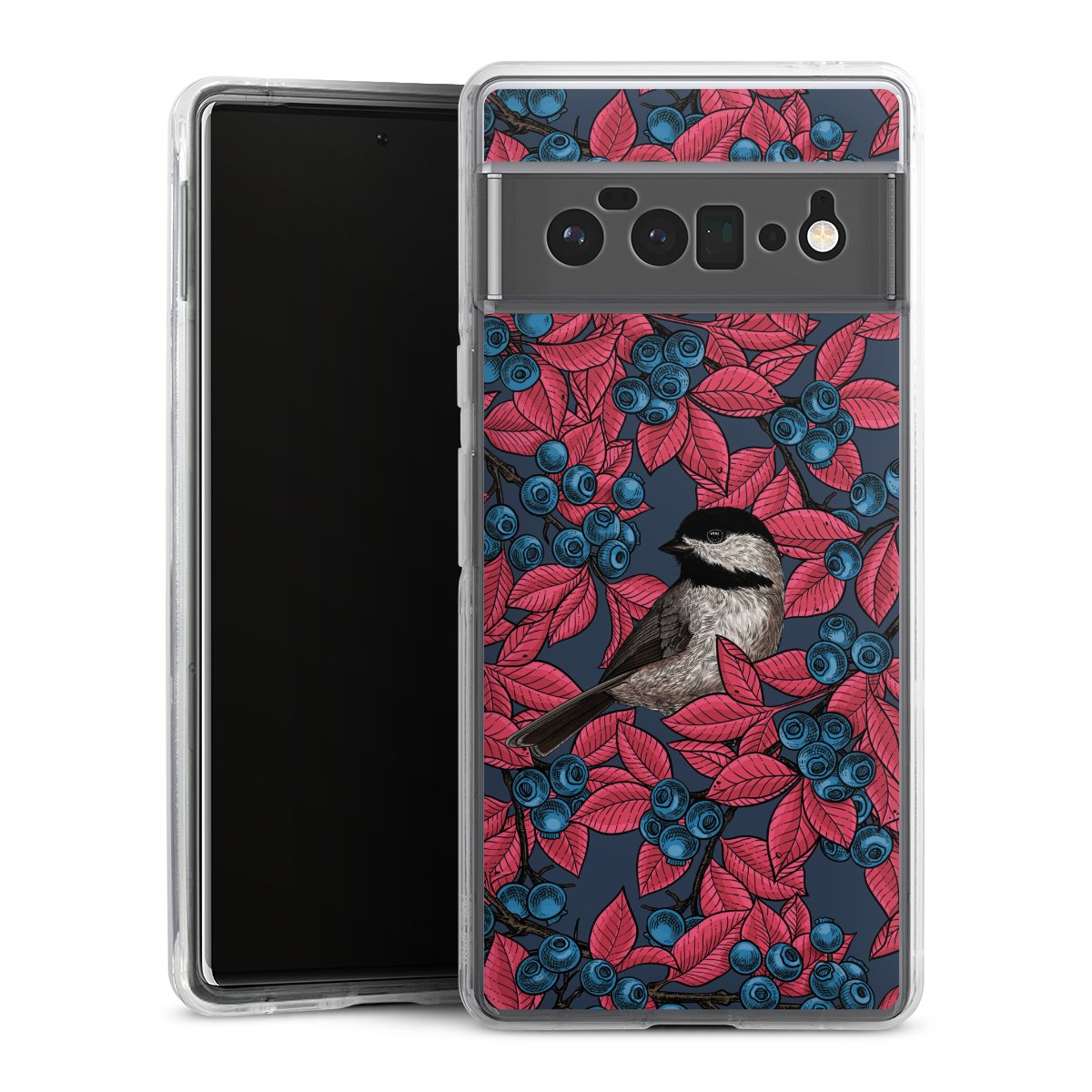 Blueberries And Birds On Navy