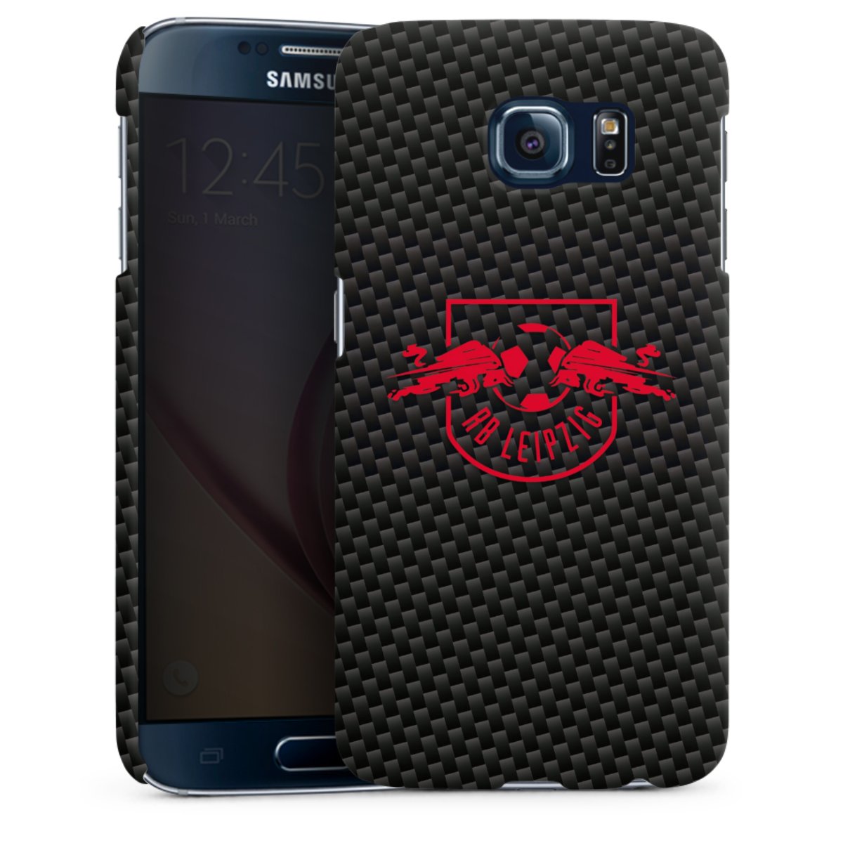 Rotes RB Leipzig Logo auf Carbonoptik