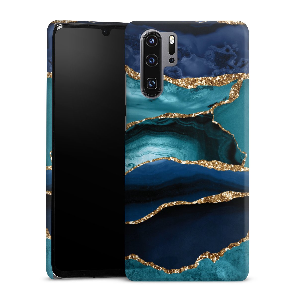 Dark and Light Blue Marble Gold Glitter Look