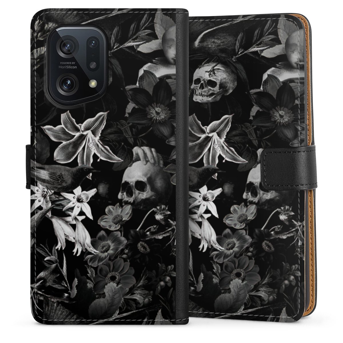 Skulls and Flowers on Black Background