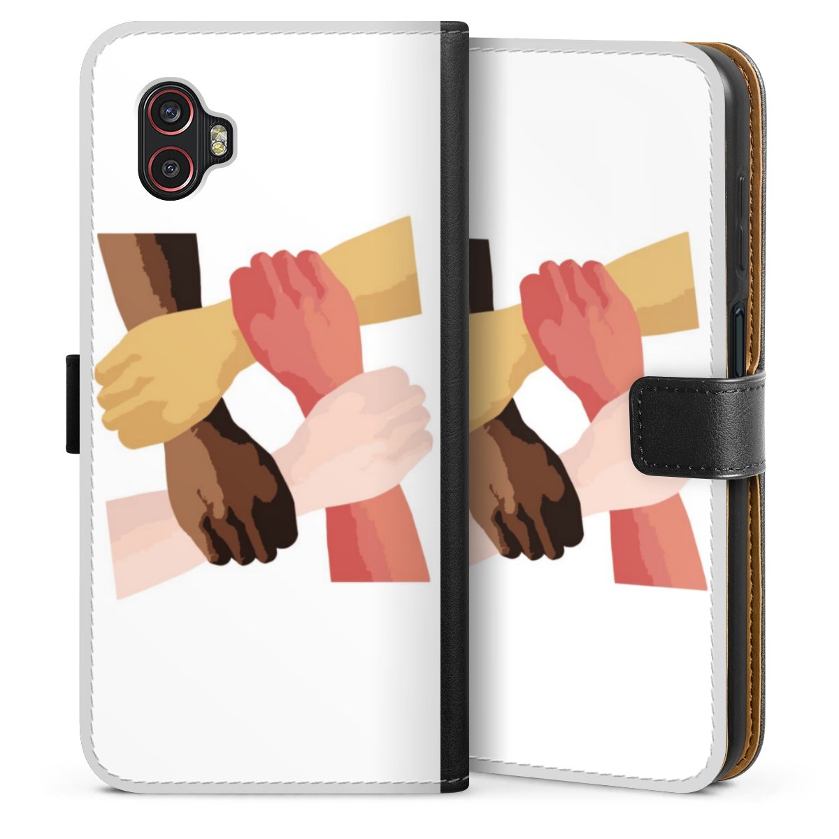 Kätevässä puhelinkotelossa on kovamuovinen polykarbonaattikotelo sisällä, jonka ansiosta puhelimesi on hyvin suojattu. Ulompi kotelo ja läppä on valmistettu laadukkaasta Skai keinonahasta. Kotelo aukeaa sivuttain ja siinä on lokerot seteleille ja korteille. Kotelo sulkeutuu magneettiläpällä.